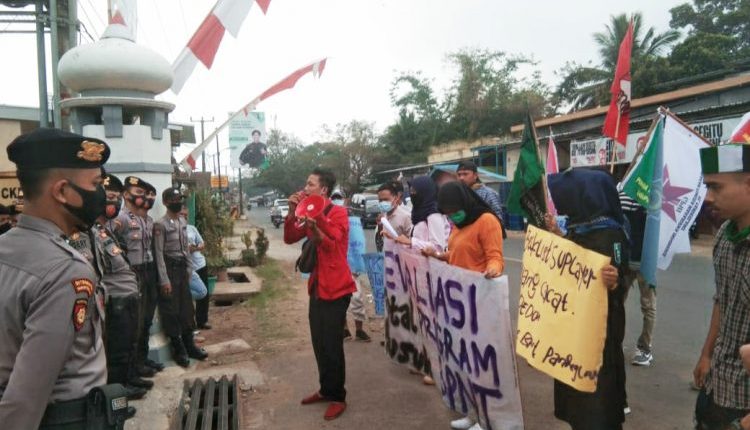 PANDEGLANG – Puluhan mahasiswa yang mengatasnamakan diri KNPI (Komunitas Nasional Pemuda Independen) yang terdiri dari GMNI, HMI, LMND, GPII, MAPANCAS menggelar aksi demonstrasi di kantor Dinas Sosial Kabupaten Pandeglang, Rabu (05/08/2020).
