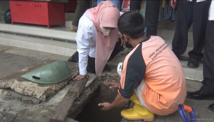 PANDEGLANG – Prihatin dengan kondisi banjir yang sering melanda Pasar Badak. Bupati Pandeglang Irna Narulita secara langsung melihat gorong-gorong yang diduga menjadi penyebab banjir di Pasar Pandeglang, Rabu (29/9/2021).
