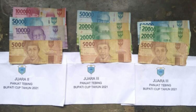 Ada tiga amplop foto yang tersebar pada Jumat (17/12/2021) pukul 15.00 WIB. Dua amplop dengan tulisan ‘Juara II Panjat Tebing Bupati Cup Tahun 2021’ dengan isi Rp165 ribu dan satu amplop dengan tulisan ‘Juara III Panjat Tebing Bupati Cup Tahun 2021’ sebesar Rp95 ribu.