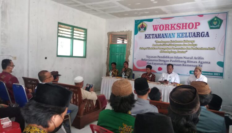 PANDEGLANG – Madrasah Tsanawiyah (MTs) Nurul Arifin tepatnya di Kampung Kadu Tomo, Desa Jiput, Kecamatan Jiput, Kabupaten Pandeglang, menggelar kegiatan workshop ketahanan keluarga yang bekerjasama dengan Puslitbang Bimas Agama dan Layanan Keagamaan Kemenag RI.