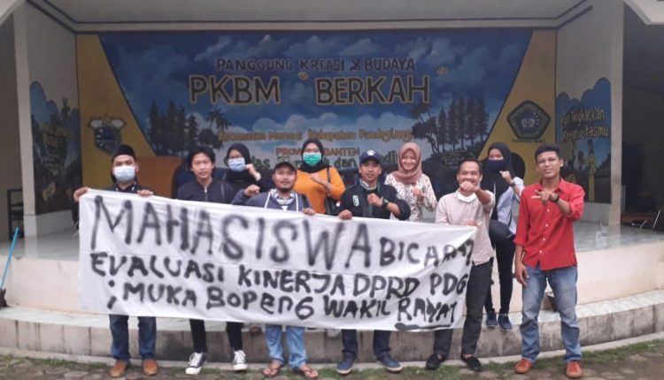 PANDEGLANG – Sejumlah mahasiswa dan pemuda kabupaten Pandeglang menggelar diskusi soal evaluasi Kinerja Dewan Perwakilan Rakyat Daerah (DPRD) kabupaten Pandeglang yang bertempat di PKBM Menes, Pandeglang, Sabtu (5/9/20).