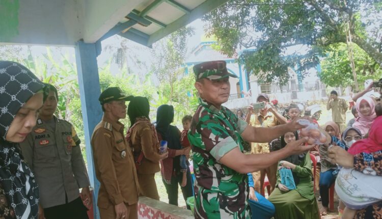 Peduli Penderita Stunting, Danposmil Mekarjaya Pandeglang Berikan Telur Kepada Balita