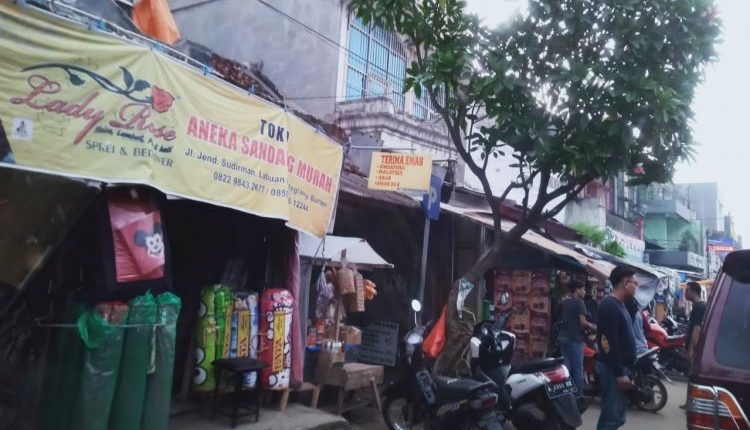 PANDEGLANG – Sejumlah pengunjung Pasar Labuan kecamatan Labuan mengeluhkan tidak adanya trotoar untuk pejalan kaki, malah trotoar yang ada banyak dibangun tempat jualan. Kondisi tersebut selain membuat macet kendaran, pengunjung juga susah saat jalan di pasar Labuan, Jumat (15/5/2020).