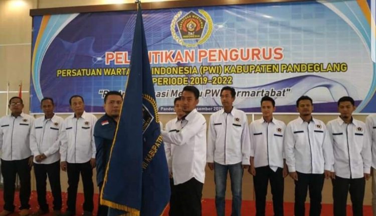 PANDEGLANG – Pengurus Persatuan Wartawan Indonesia Kabupaten Pandeglang periode 2019-2022 resmi dilantik di Ruang Garuda Pendopo Pandeglang, Selasa (17/12/2019), oleh Ketua PWI Provinsi Banten, Rian Nopandra.