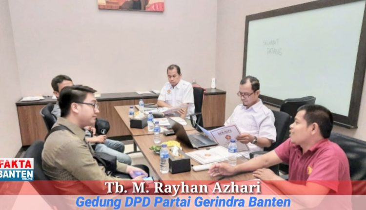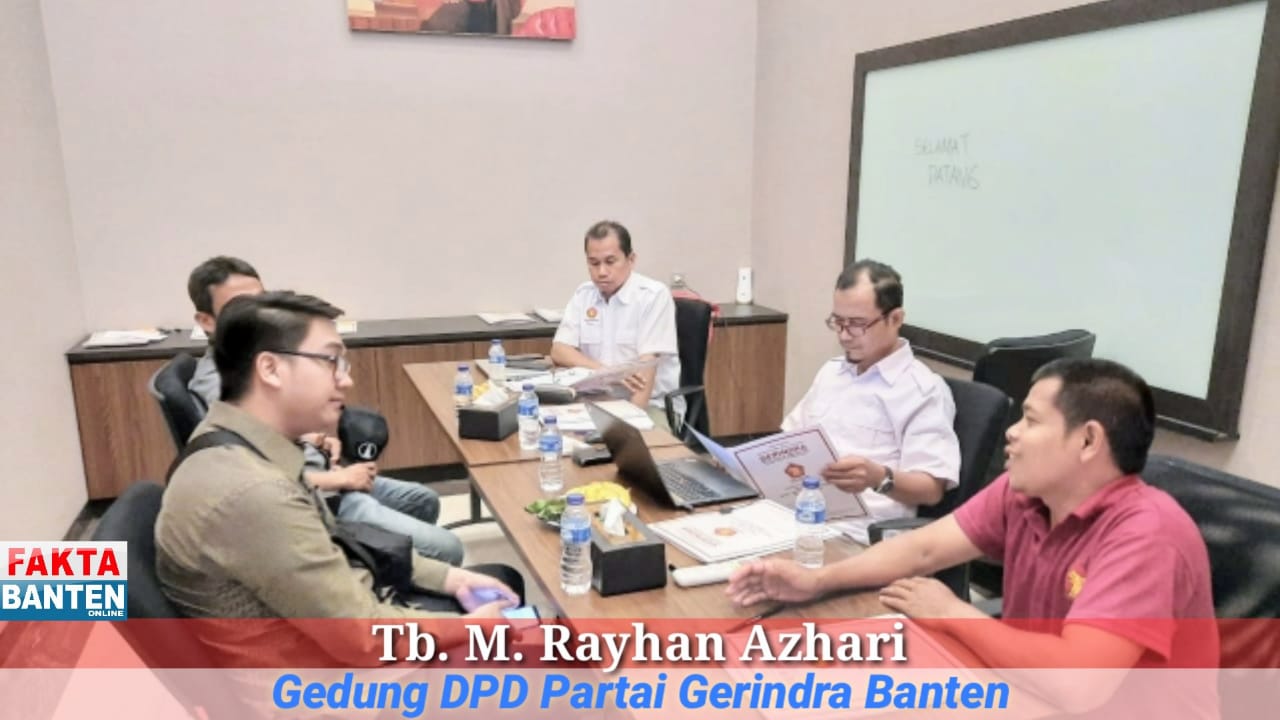 SERANG – Bakal Calon Wakil Bupati Kabupaten Pandeglang Tb. M. Rayhan Azhari penuhi panggilan Panitia Desk Pilkada partai Gerindra. Hal itu untuk melakukan proses interview terkait visi-misi, di Gedung DPD partai Gerindra Banten, Selasa (9/12/2019).