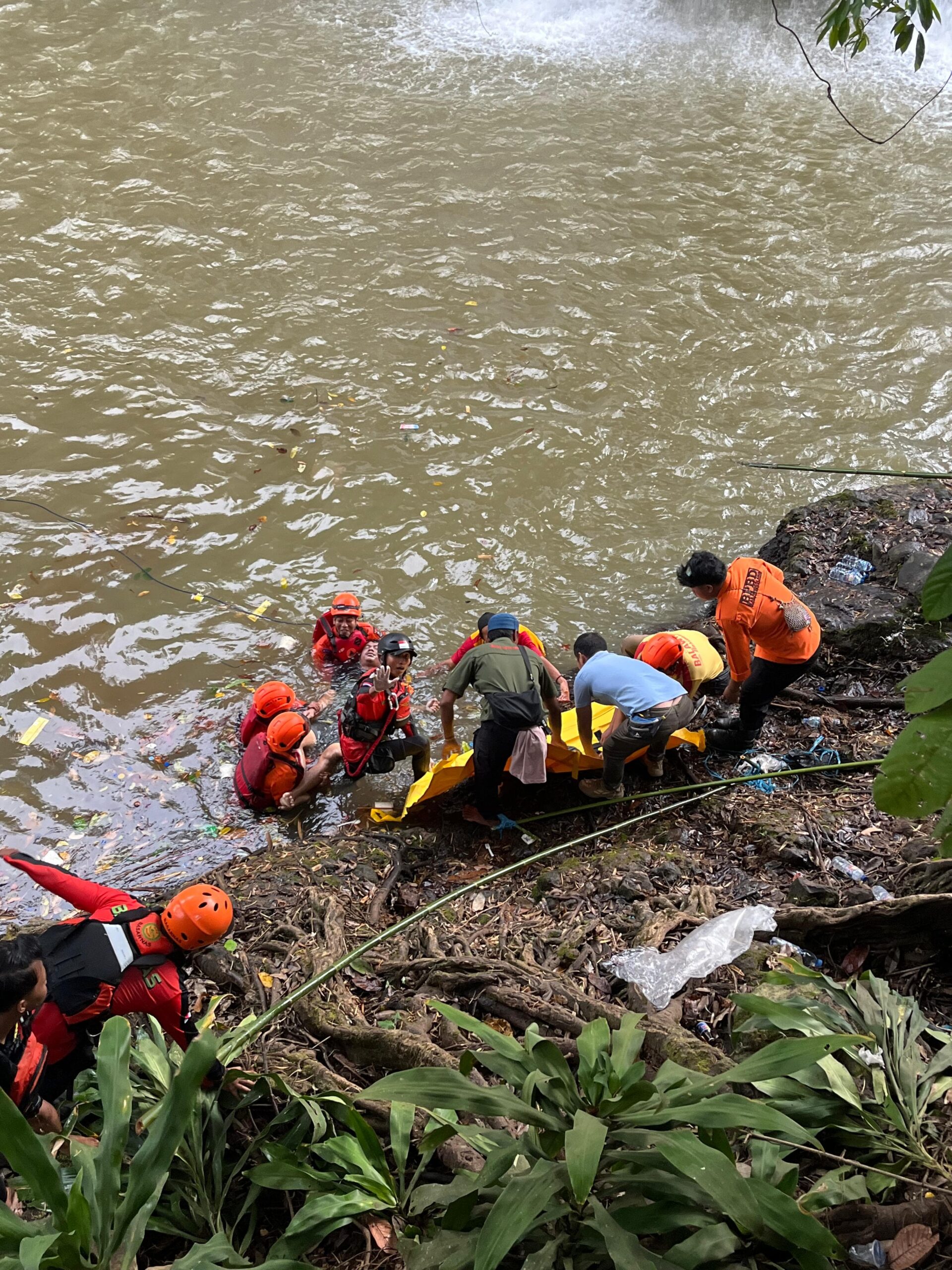 Dalam proses evakuasi, tim juga menyiagakan peralatan selam dan medis guna mengantisipasi medan di lokasi curug.