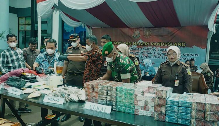 PANDEGLANG – Kejaksaan Negeri (Kejari) Pandeglang memusnahkan 20.108 bungkus rokok ilegal hasil sitaan Bea Cukai. Pemusnahan rokok ilegal berbagai macam merk dilakukan oleh Kejaksaan Negeri Pandeglang karena perkaranya sudah incracht atau sudah berkekuatan hukum tetap berdasarkan putusan Pengadilan Negeri Pandeglang.