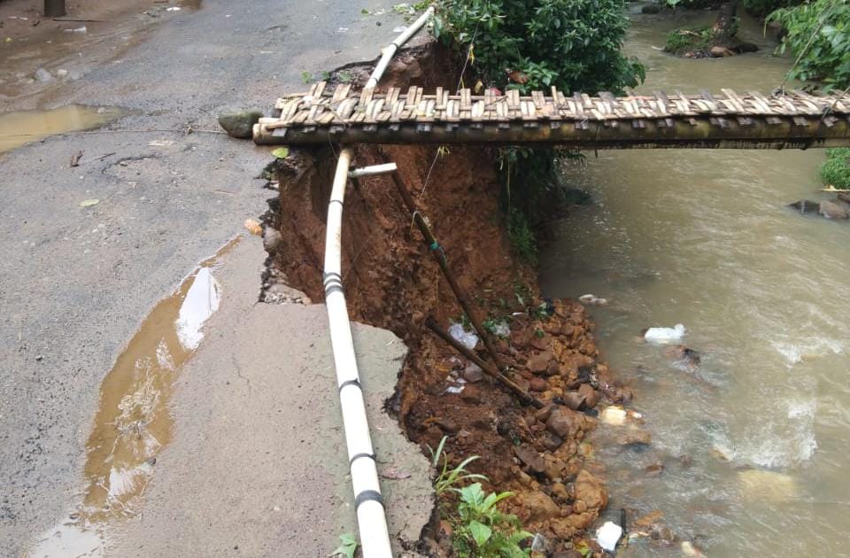 PANDEGLANG – Ruas jalan poros desa tepatnya di Kampung Kadu Tomo, Desa Sindangkarya, Kecamatan Menes, Kabupaten Pandeglang telah terjadi longsor yang disebabkan oleh curah hujan tinggi dan aliran sungai Cimenes.