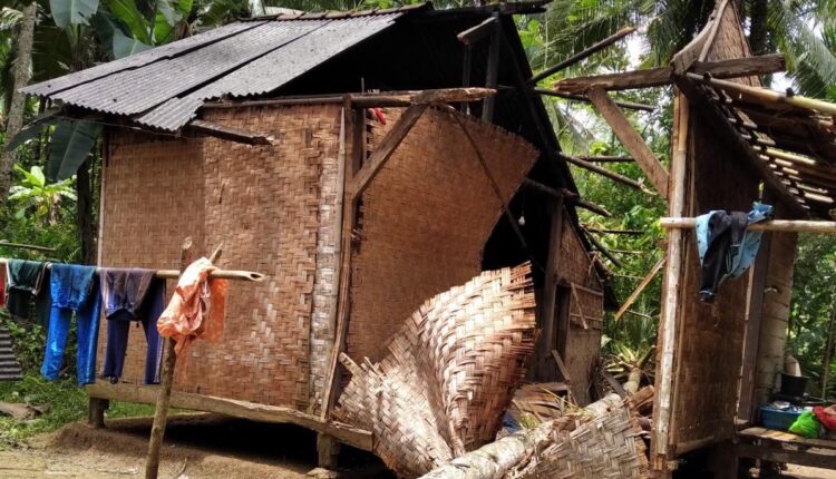 Peristiwa yang terjadi pada pukul 11 siang membuat rumah yang terbuat dari material kayu dan bambu hancur berantakan. Saat peristiwa terjadi para penghuni rumah sedang ada di luar.