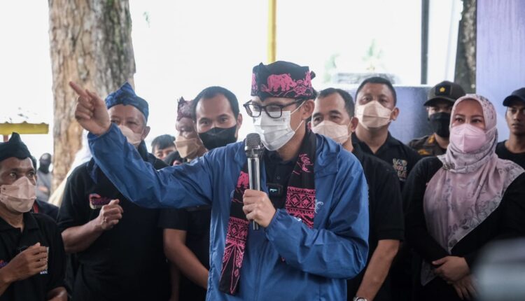 PANDEGLANG – Menteri Pariwisata Ekonomi Kreatif Sandiaga Salahuddin Uno mengunjungi Desa Wisata Sukarame, Kecamatan Carita, Kabupaten Pandeglang, kunjungan tersebut dalam rangka Anugraha Desa Wisata Indonesia 2021, dikarenakan kawasan carita masuk dalam 50 besar destinasi wisata, Sabtu, (2/10/21)