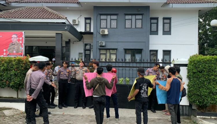 PANDEGLANG – Sejumlah Mahasiswa yang tergabung dalam Gerakan Aksi Mahasiswa (GAM) mengelar aksi demontrasi di halaman Kantor Dinas Pekerjaan Umum Penataan Ruang (DPUPR) Pandeglang, Senin (11/06/2024).