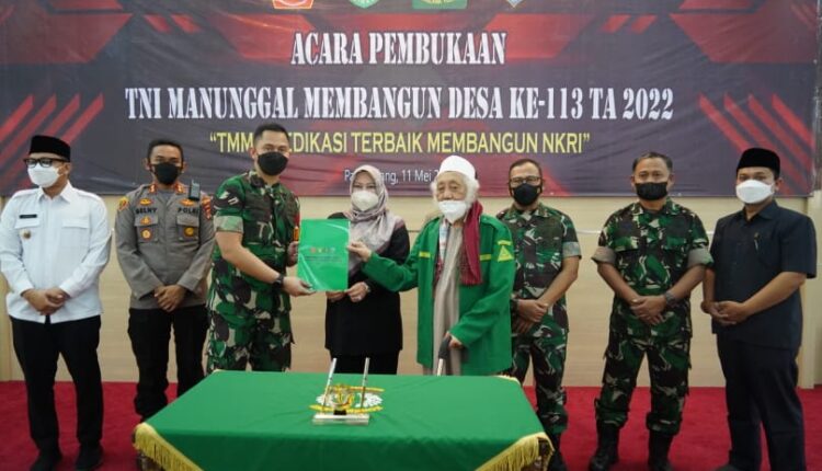 PANDEGLANG – Danrem 064/MY Brigjen TNI Yunianto bersama Bupati Pandeglang Hj Irna Nurulita membuka program TNI Manunggal Membangun Desa (TMMD) ke-113 Kodim 0601/Pandeglang bertempat di Pendopo Kabupaten Pandeglang, Rabu (11/05/2022).