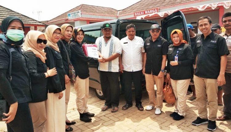 PANDEGLANG – Kepala stasiun TVRI Jakarta dan Banten, Jaenudin Latuconsina bersama jajarannya, menyalurkan bantuan kepada masyarakat terdampak bencana tsunami di Desa Teluk, Kecamatan Labuan, Kabupaten Pandeglang, Rabu (9/1/19). Bantuan tersebut berupa pakanan siap saji, pakaian serta kebutuhan masyarakat lainnya.