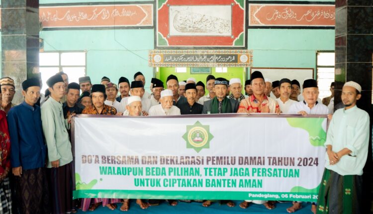 PANDEGLANG – Pondok Pesantren Salafi Irsyadussa’adah Saketi, Kabupaten Pandeglang, Provinsi Banten menggelar doa bersama sekaligus deklarasi Pemilu damai, Selasa (6/2/2024). Kegiatan tersebut dihadiri oleh berbagai tokoh agama Saketi, meliputi KH Jupri, Ketua Lembaga Dakwah Nahdlatul Ulama (LDNU) sekaligus Ketua MUI Desa Saketi Ustadz Kiyai Abdul Azis Nurdin, dan Ketua MUI Kecamatan Saketi Ustadz Kiyai Ending Fahrudin.