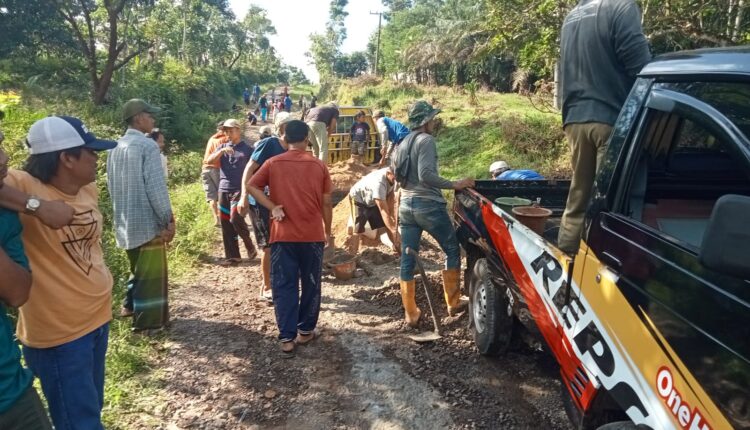 Warga Cibitung Pandeglang Gotong Royong Perbaiki Jalan