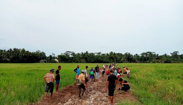 Kegiatan gotong royong dilakukan agar jalur bisa dilalui dengan mudah oleh warga saat melakukan aktivitas.