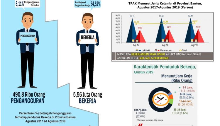 Dalam rilis BPS Banten, penduduk yang bekerja pada Agustus 2019 sebesar 5,56 juta orang naik sekitar 230 ribu pekerja jika dibandingkan Agustus 2018.