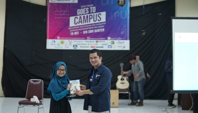 SERANG – Ratusan mahasiswa UIN Sultan Maulana Hasanuddin Banten ikut memeriahkan hari ulang tahun kedua. Hal tersebut terlihat dari antusiasme mahasiswa yang sudah memadati Aula Sadzeli Hasan Lt.1 dalam acara Spectrum Goes to Campus, Kamis (16/5/2019).
