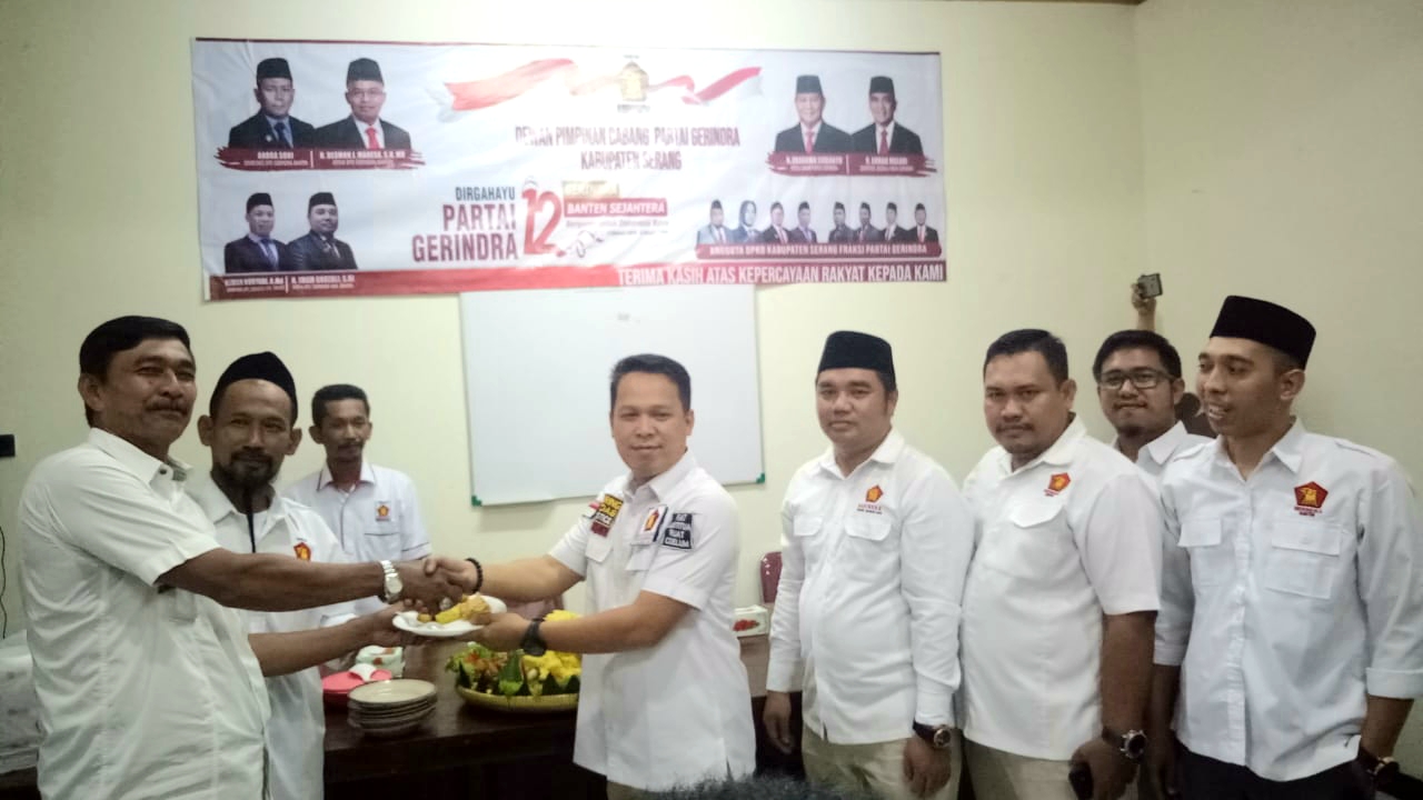 SERANG – Dewan Pimpinan Cabang (DPC) Partai Gerakan Indonesia Raya (Gerindra) Kabupaten Serang menggelar tasyakuran sebagai wujud peringatan Hari Ulang Tahun (HUT) Partai Gerindra ke-12, di Sekretariatnya yang bertempat di Kecamatan Ciruas, Kabupaten Serang, Kamis, (6/2/2020).