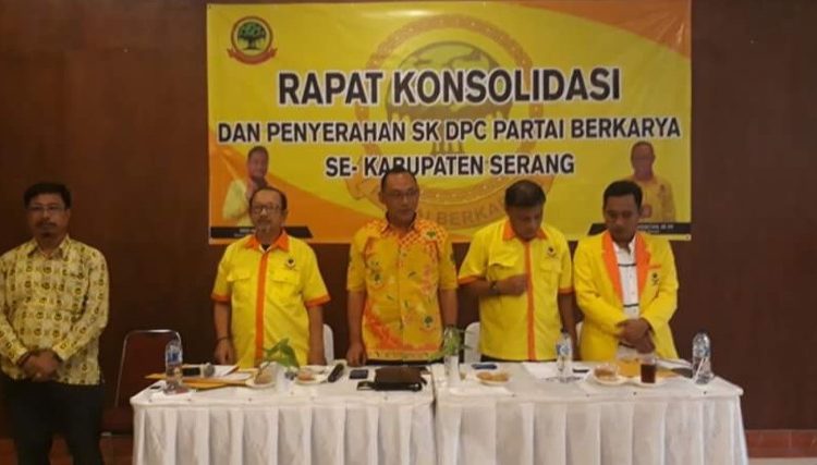 SERANG – Dewan Pengurus Wilayah (DPW) Partai Berkarya Provinsi Banten menggelar konsolidasi daerah bersama DPD dan DPC dua Kabupaten, yakni Pengurus Kabupaten dan Kota Serang di Aula Sari Kuring Indah (SKI) Kota Serang, Sabtu (5/8/2017).