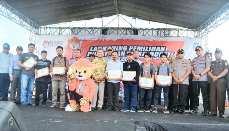 SERANG – Komisi Pemilihan Umum (KPU) Kabupaten Serang menggelar launching Pemilihan Kepala Daerah (Pilkada) Kabupaten Serang tahun 2020. Dalam kesempatan ini, KPU Kabupaten Serang mengenalkan maskot dan jingle untuk membuat dinamika Pilkada semakin menarik dan berkesan.
