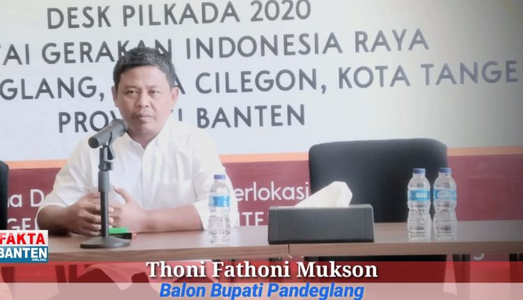SERANG – Bakal Calon Bupati dan Wakil Bupati Kabupaten Pandeglang Thoni Fathoni Mukson, menyebut bahwa banyak potensi alam di Kabupaten Pandeglang yang melimpah ruah. Namun Pemkab justru masih belum bisa memaksimalkan potensi alamnya untuk memberikan dampak yang baik untuk masyarakatnya. Hal demikian dikatakan Toni kepada awak media di Gedung DPD partai Gerindra Banten, saat memenuhi panggilan untuk diwawancara oleh panitia Desk Pilkada partai Gerindra. Senin (9/12/2019).