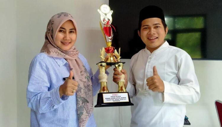 SERANG – Agus Sunarto peraih Juara 1 Seleksi Pemuda Pelopor bidang Agama Sosial Budaya Tingkat Kabupaten Serang tahun 2023 mendapatkan apresiasi dari Warnery Poetry, Camat Waringinkurung, dalam pertemuan di Kantor Camat Waringinkurung, Jumat (19/5/2023).