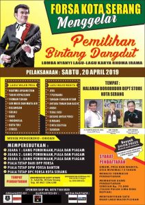 Kali ini Ketua Dewan Pimpinan Cabang Forsa Kota Serang (DPC FKS), Ade Reska beserta jajaran pengurus akan menggelar acara ajang pencarian bakat menyanyi lagu-lagu khusus karya Raja Dangdut, Rhoma Irama.
