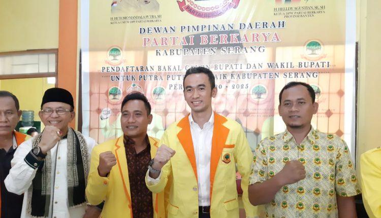 SERANG – Bakal Calon Bupati Kabupaten Serang Eki Baihaki terus melakukan penjajakan politik dengan beberapa partai politik, salah satunya menyerahkan formulir penjaringan calon kepala daerah di Partai Berkarya. Hal itu dilakukan guna mencari dukungan untuk memantapkan langkahnya maju sebagai calon Bupati Serang.