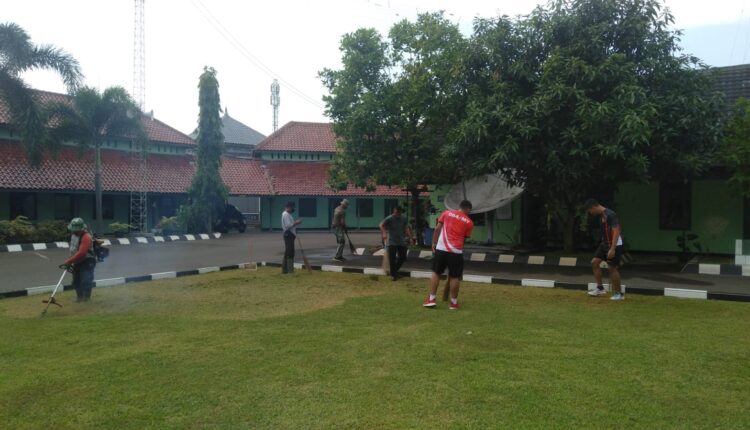 Ciptakan Suasana Nyaman dan Indah, Prajurit Korem 064/MY Laksanakan Pembersihan Pangkalan