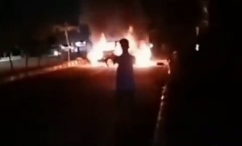 Namun, saat warga mencoba membalikkan angkot yang terbalik tersebut. Diduga Bahan bakar minyak (BBM) dari kendaraan yang tumpah mengenai kabel yang korslet. Sehingga hal itu pun langsung membakar badan kendaraan.