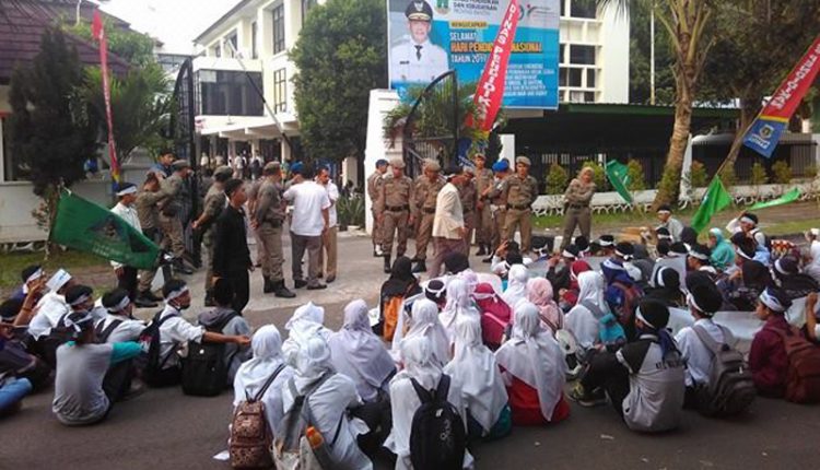 SERANG – Puluhan massa pelajar dari organisasi Pelajar Islam Indonesia (PII) Banten memblokade gerbang kantor Dinas Pendidikan dan Kebudayaan (Dindikbud) Provinsi Banten di Kawasan KP3B, Selasa (2/5/2017) sore.