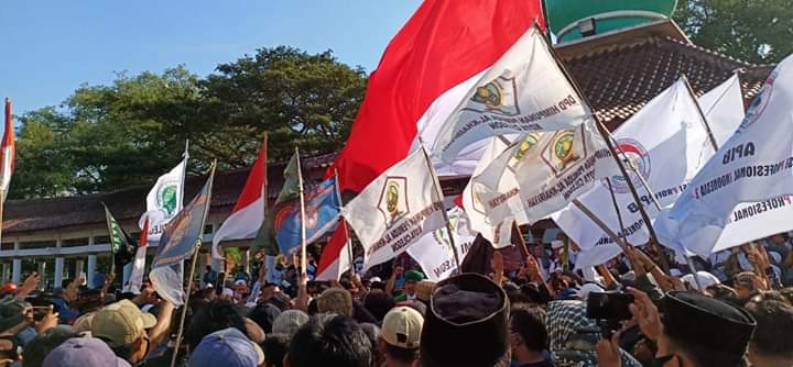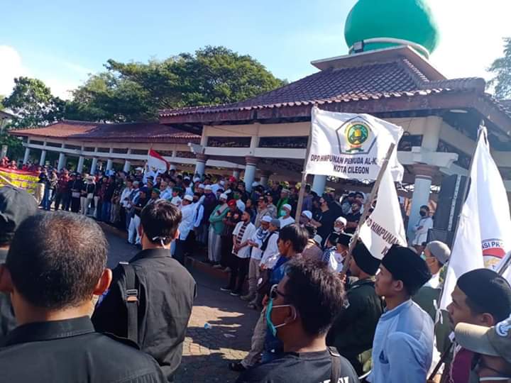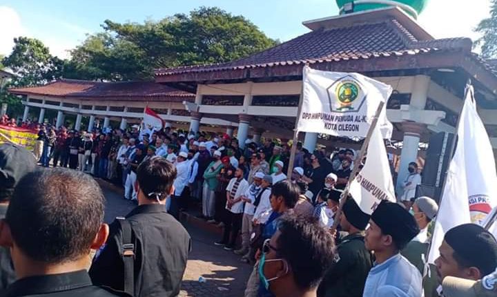 “Kami sesalkan pemerintah malah menunda. Karena keinginan umat, keinginan masyarakat itu bukan menunda, tapi membatalkan,” ucapnya kepada awak media seusai aksi.