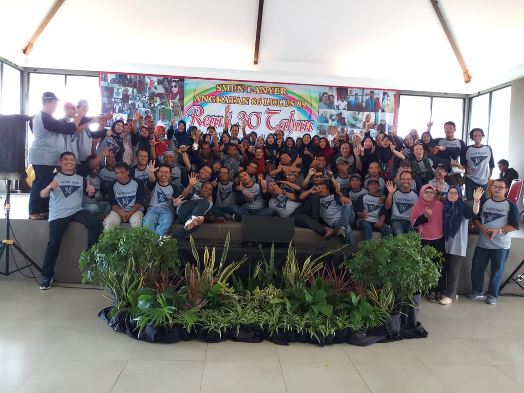 CILEGON – Sebanyak 130 alumni SMP Negeri 1 Anyar angkatan 89 menggelar Reuni Akbar di Hotel Mambruk, Anyar, Kabupaten Serang, Banten.