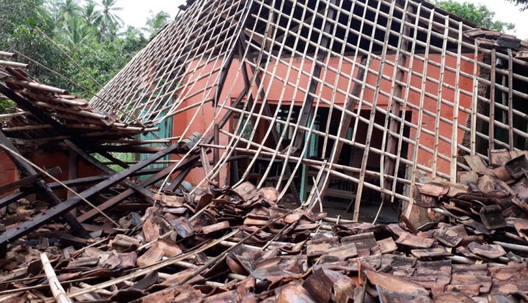 Bangunan Madrasah Diniyah Al-Khairiyah Kresek, Kecamatan Mancak, Kabupaten Serang, ambruk dan mengalami kerusakan parah.