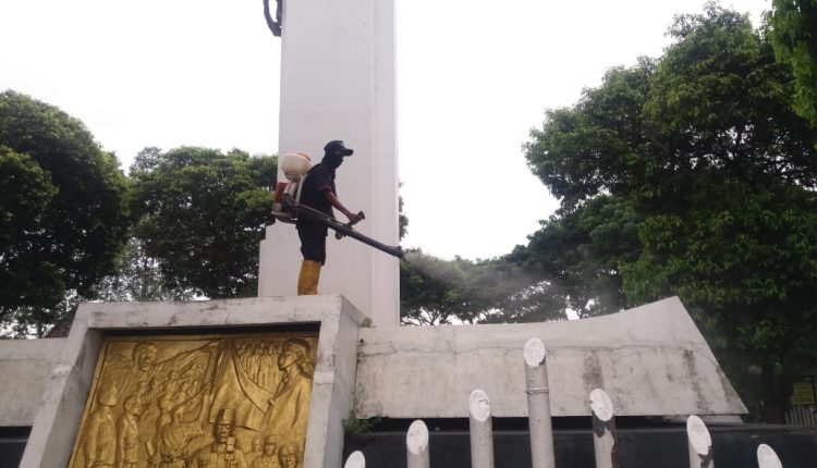 Antisipasi Corona, DLH Semprotkan Desinfektan di Alun-alun Serang