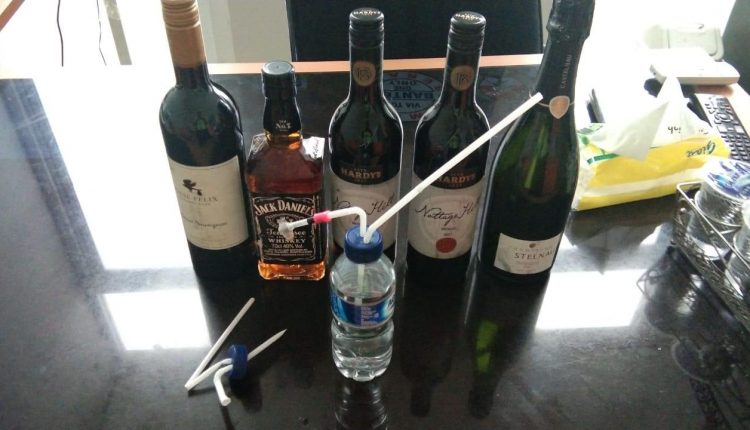 Selain itu, petugas juga menemukan 5 botol Miras berbagai merk di dalam mobil tersebut.