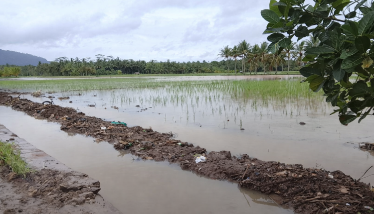 Banjir tidak hanya merendam sawah, tetapi juga membawa lumpur dari aliran sungai sehingga merusak tanaman padi yang sebagian besar sudah memasuki masa panen.
