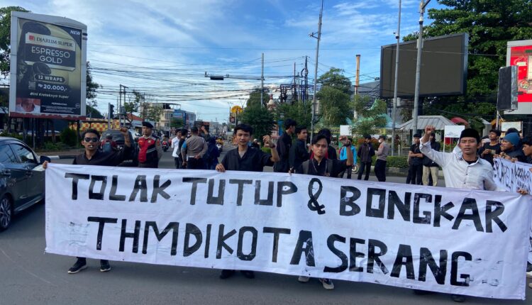 Bawa Bendera Raksasa, Mahasiswa Desak Pemkot Serang Tutup Tempat Hiburan Malam