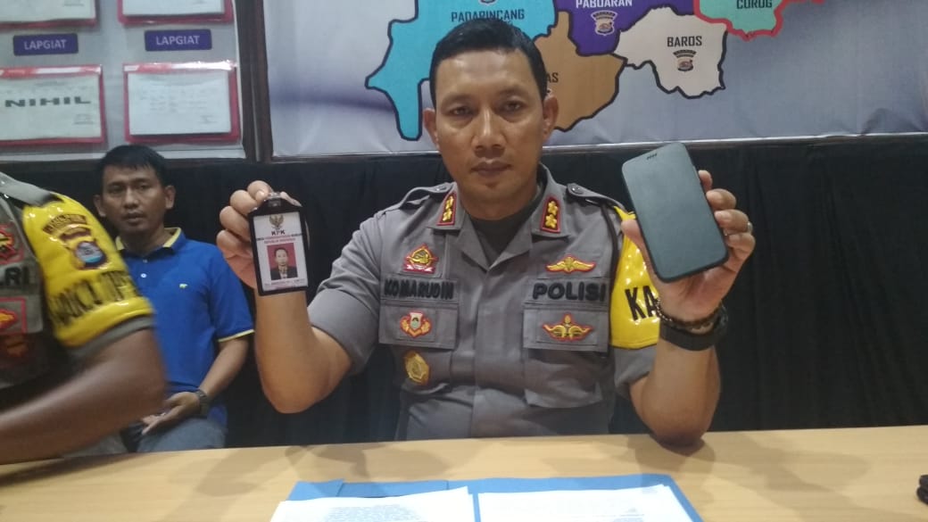 Dari tangan terduga, Kepolisian Resor (Polres) Serang Kota berhasil mengamankan barang bukti satu buah Kartu id card KPK Palsu dan satu buah Handphone milik tersangka.