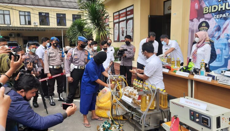 “Jadi untuk menarik pembeli, pelaku ini mengiming-imingi promo 1 sachet sabun cuci merk Total disetiap pembelian 1 liter minyak goreng curah yang ditempeli merk Laban oleh pelaku” ucap Dedi.