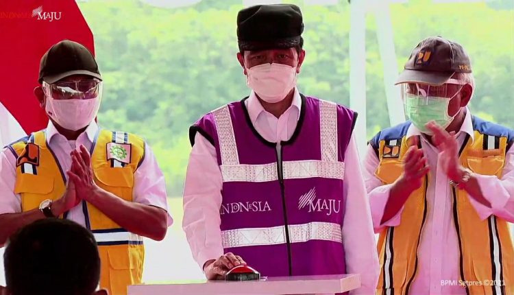 SERANG – Presiden Indonesia, Joko Widodo meresmikan Bendungan Sindangheula yang terletak di Kecamatan Pabuaran, Kabupaten Serang, Provinsi Banten, Kamis, (4/3/2021).