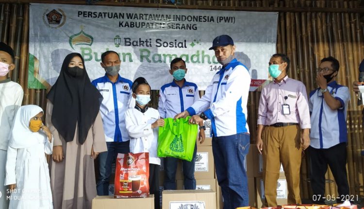 SERANG – Persatuan Wartawan Indonesia (PWI) Kabupaten Serang menggelar kegiatan Santunan Yatim Piatu dan buka bersama, Jumat (7/5/2021).