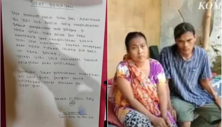 Beredar Surat Pernyataan Suami Almarhumah Yuli, Bantah Kematian Istri Bukan Disebabkan Kelaparan