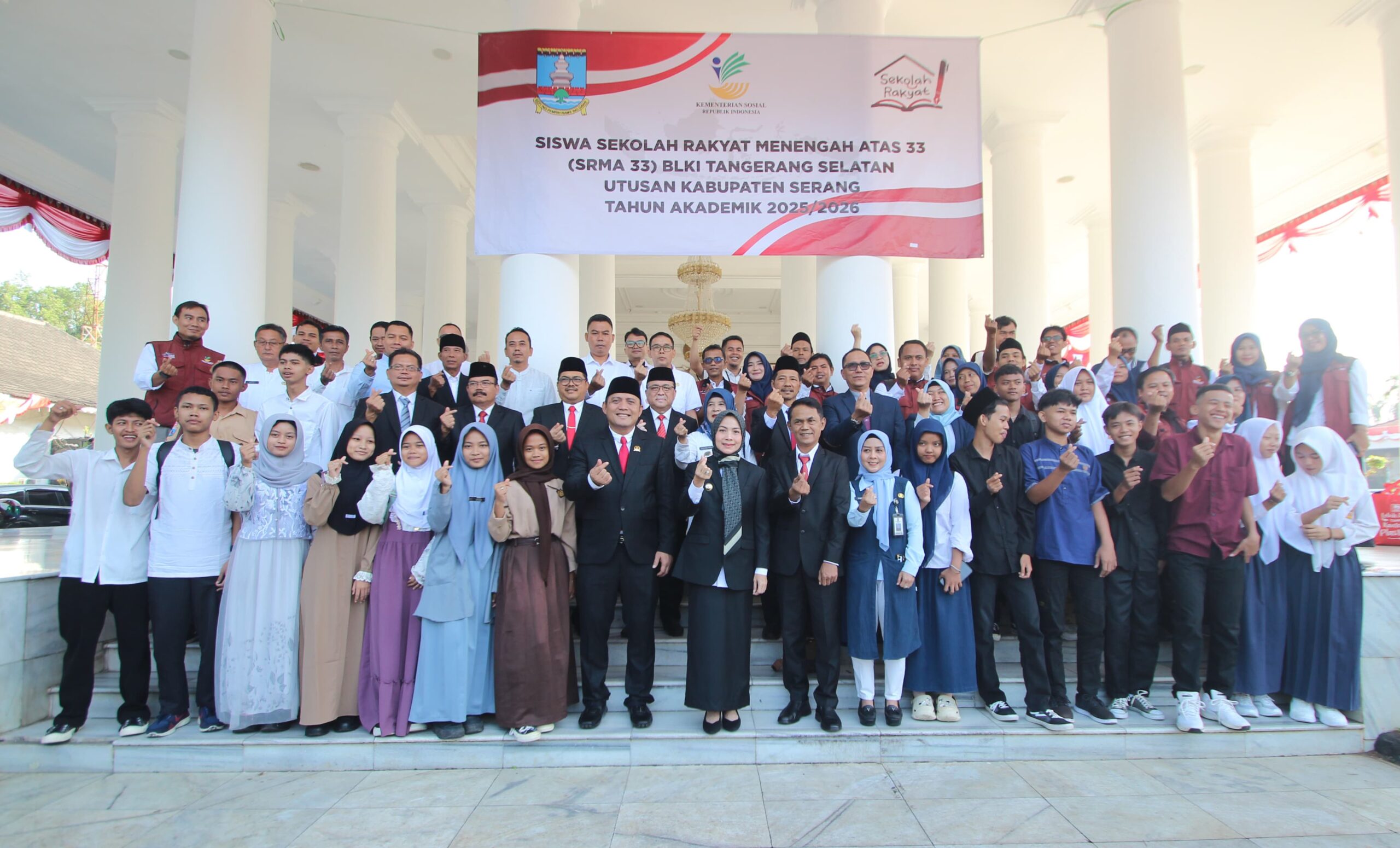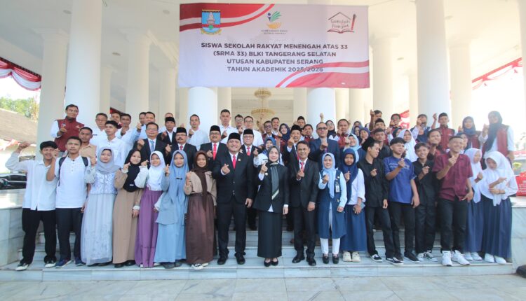 SERANG-Bupati Serang Ratu Rachmatuzakiyah melepas secara resmi keberangkatan 19 pelajar asal Kabupaten Serang yang akan melanjutkan ke Sekolah Rakyat Menengah Atas (SRMA) 33 Tangerang Selatan Tahun Ajaran 2025/2026 di Pendopo, Jumat, (15/8/2025)