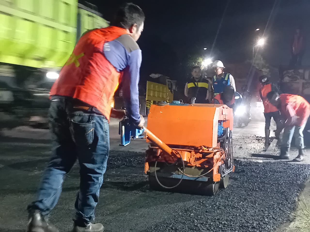“Perbaikan jalan seluas sekitar 225 meter persegi ini merupakan wujud kepedulian manajemen PT Sumber Gunung Maju yang yang merupakan bagian dari PT Batu Alam Makmur (BAM) – PT SMI Grup terhadap kondisi jalan yang rusak,” ujar Ece saat ditemui di lokasi, Senin (20/10/2025) malam.