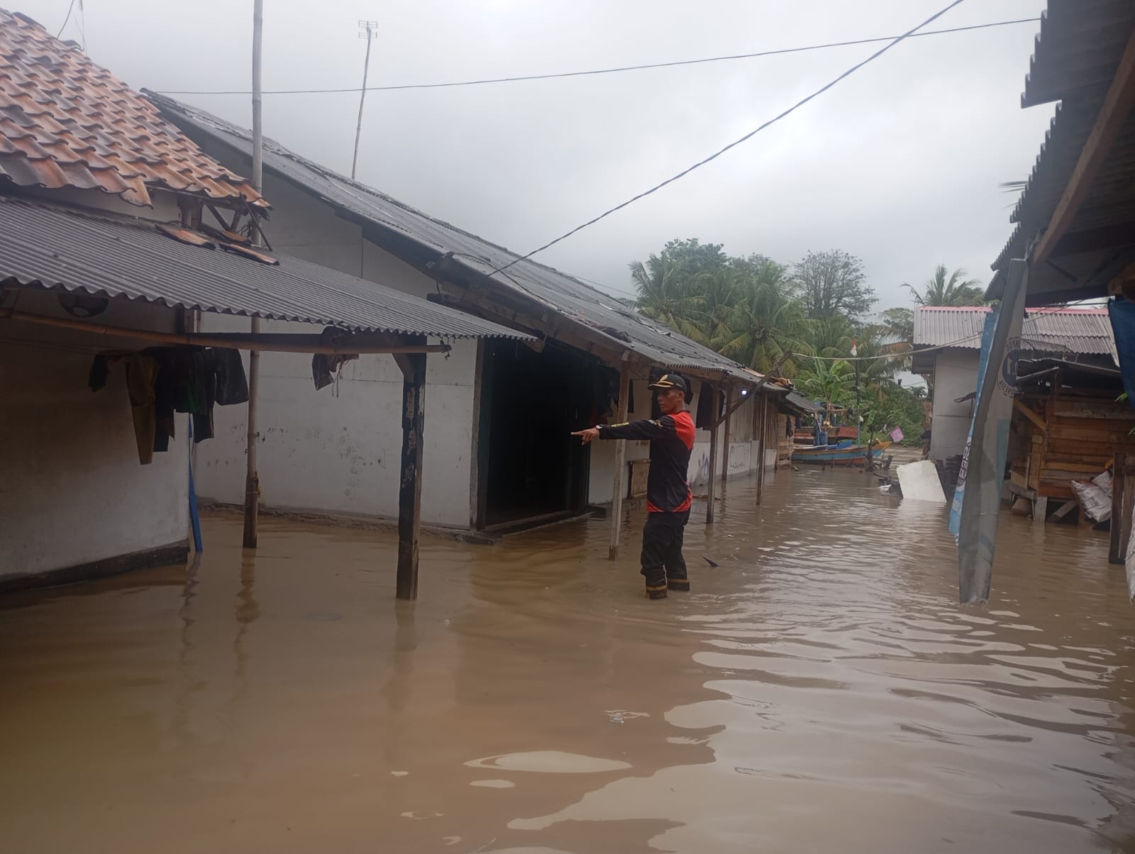 Linkungan Kaligandu Tegal, Kelurahan Terondol, Kecamatan Serang, ketinggian air mencapai 80 cm dan merendam 16 rumah, 16 KK dan 48 jiwa terdampak.