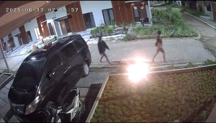 Rekaman CCTV menunjukkan dua orang mencurigakan tampak mengintai area perumahan saat malam hari.