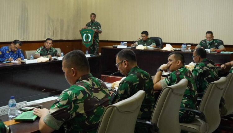 SERANG – Danrem 064/MY, Brigjen TNI Tatang Subarnax menerima paparan dari Kasdim 0602/Serang, Letkol Inf. Augusto Moniz Lopez, terkait Rencana Tentara Manunggal Membangun Desa (TMMD) ke-115 tahun 2022 Kodim 0602/Serang dengan thema ”TMMD Dedikasi Terbaik Membangun NKRI”, bertempat di Ruang Rapat Makorem 064/MY Jalan Maulana Yusuf No 9 Kota Serang, pada Senin (19/9/2022).
