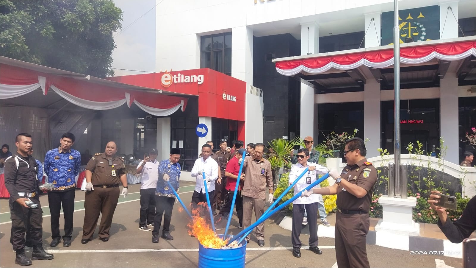 Acara pemusnahan barang bukti hasil kejahatan ini dilakukan di halaman kantor kejaksaan Negeri Serang, Rabu, (17/7/2024).